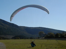 Landningen nere vid skärmflygskolan i La Roque Esclapon: en stor slät gräsäng omgiven av andra fält. Det är bara från väststarten man når hit på glidtal, men vem flyger på glidtal när solen skiner?